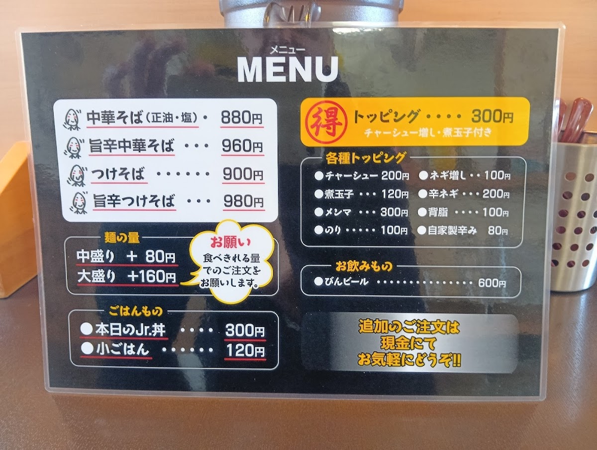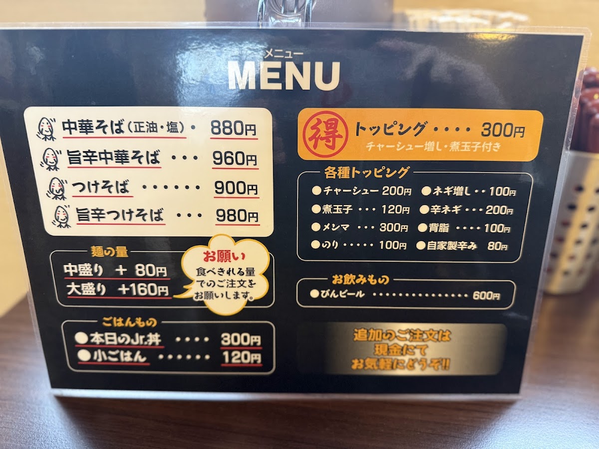 The menu also features various styles of oil ramen, such as the 特製油そば 大盛, a large portion of specialty oil ramen, and the 特製つけ麺 中, a dipping noodle dish with rich flavors. If you prefer something lighter, the ねぎ南蛮 中 offers a fresh, scallion-based flavor, while the 小ライス provides a small portion of rice to accompany any meal. For those who love extra toppings, the 特製ネギ南蛮 and 特製つけそば大盛 give a flavorful twist with extra scallions or a large serving of dipping noodles.