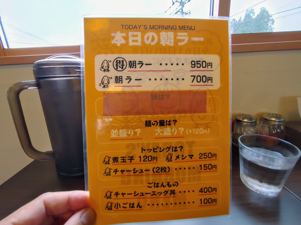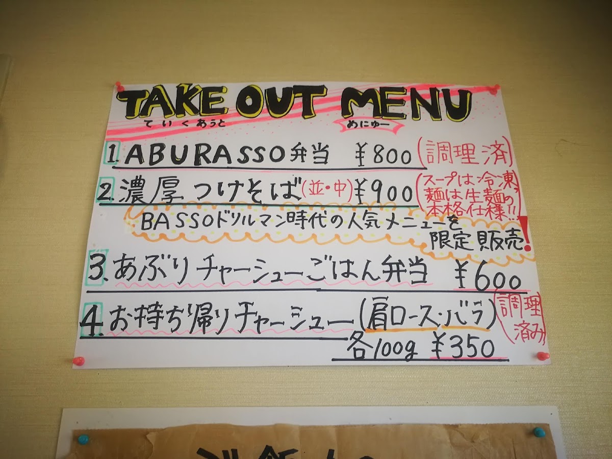 The menu also offers チャーシュー麺 中, a medium-sized ramen with plenty of char siu, and チャーシューメンマ, a dish that pairs char siu with savory bamboo shoots. For a unique rice experience, try the ネギブタめし, a rice bowl topped with pork and scallions. Lastly, the 特製朝ラー麺アップ offers a special morning ramen, perfect for starting the day with a warm and flavorful meal. Overall, Basso どりるまん商店 羽後町本店 provides an extensive selection of satisfying dishes that promise a delightful culinary experience.